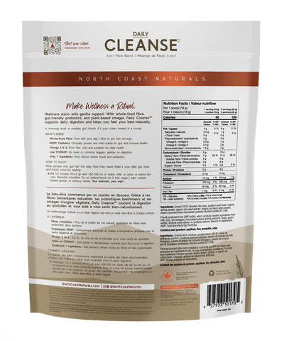 This premium 3-in-1 fibre formula provides 14 g of fibre (50% of your daily requirement), 6 g of essential fats, and probiotics, all from whole-food based sources for gentle daily fibre health & cleansing.